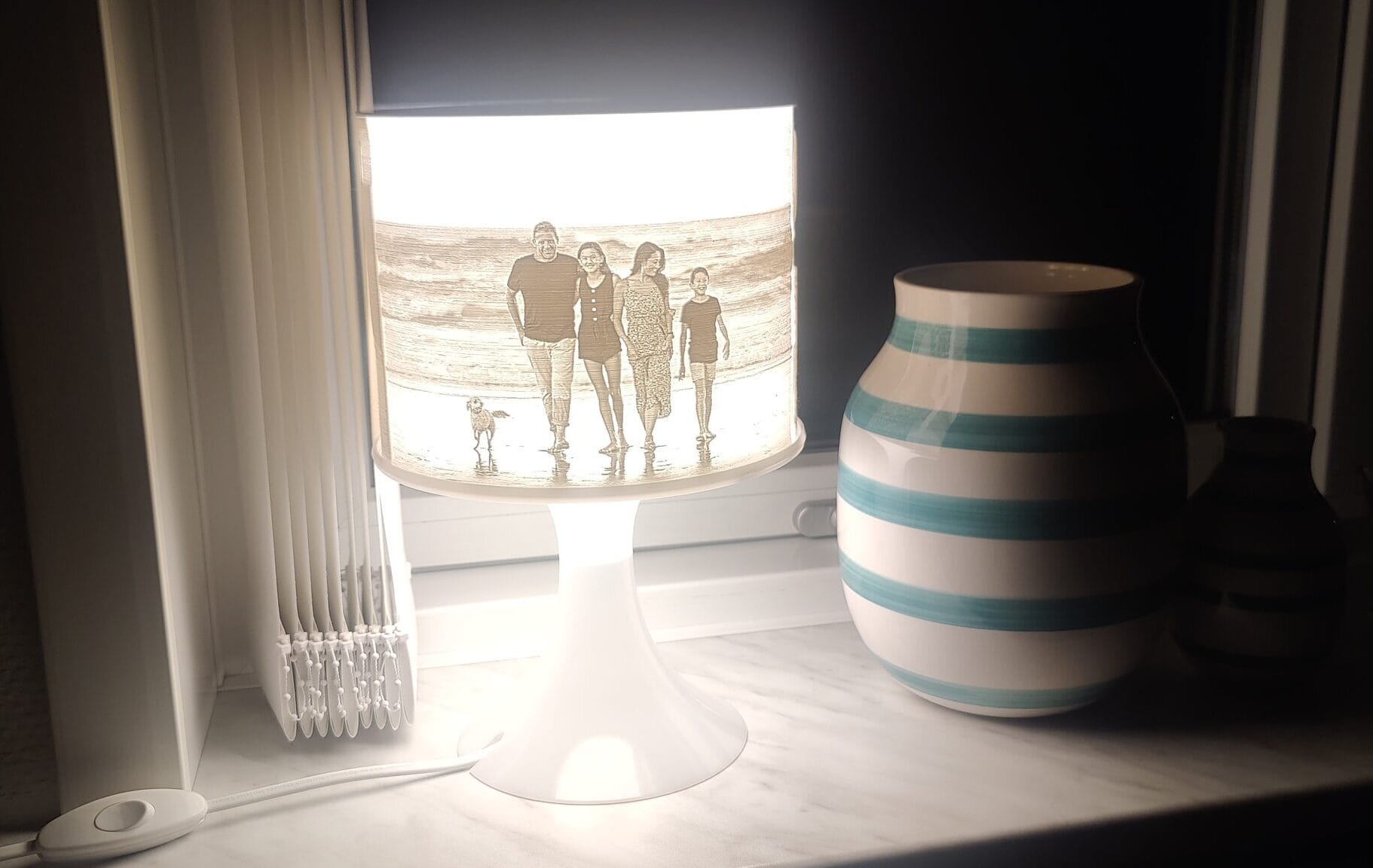 En personlig lampe med dine egne billeder hele vejen rundt.